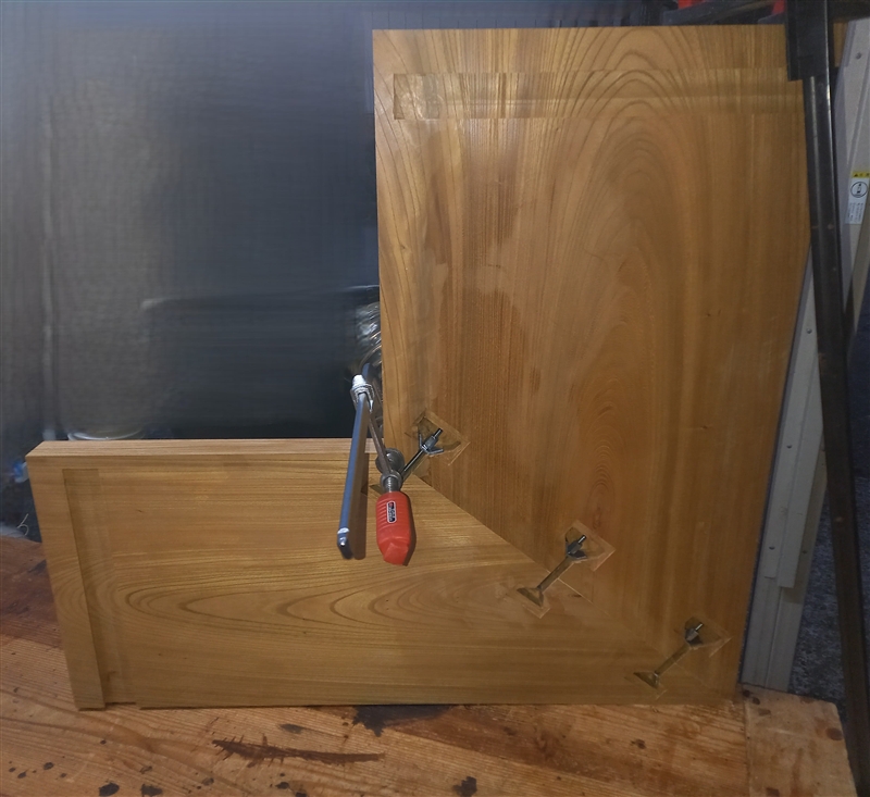 荷重が最もかかる留め部分にはベンチトップコネクター(カウンター連結金具)を使用し、さらに裏からビスで止めることとしました。